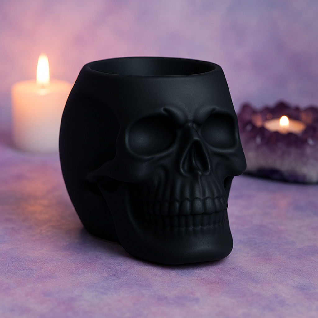 Plongez dans une ambiance envoûtante avec ce brûleur à fondants en forme de crâne noir, une pièce aussi mystérieuse que décorative. Son design sculpté et sa finition noire mate en font un objet fort, idéal pour instaurer une atmosphère gothique, ésotérique et chic dans votre intérieur.